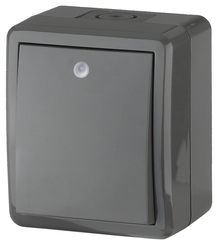 11-1402-03 ЭРА Выключатель с подсветкой IP54, 10АХ-250В, ОУ, Эра Эксперт, серый (16/160/2560)