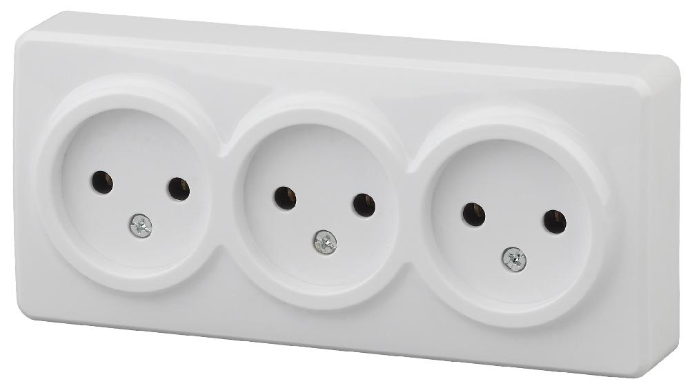 11-2207-01 ЭРА Розетка 3х2P, 16A-250В, IP20, ОУ, Эра Эксперт, белый (8/80/1440)