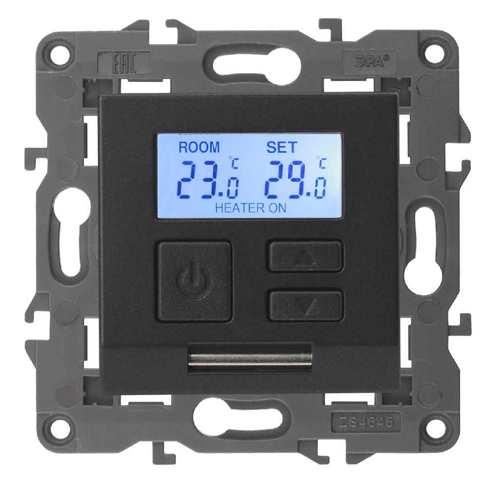 14-4111-05 ЭРА Терморегулятор универс. 230В-Imax16А, IP20, Эра Elegance, антрацит (6/60/720)