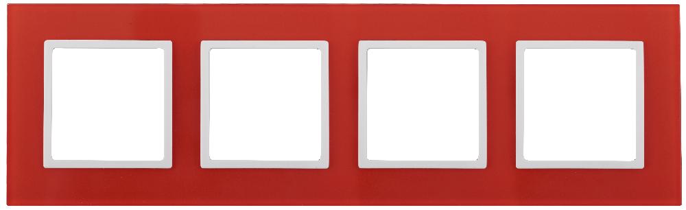 Рамка для выключателей и розеток 4-постовая серии Эра Elegance цвет красный 14-5104-23. Сделана из стекла. Используется только с механизмами серии Эра Elegance.