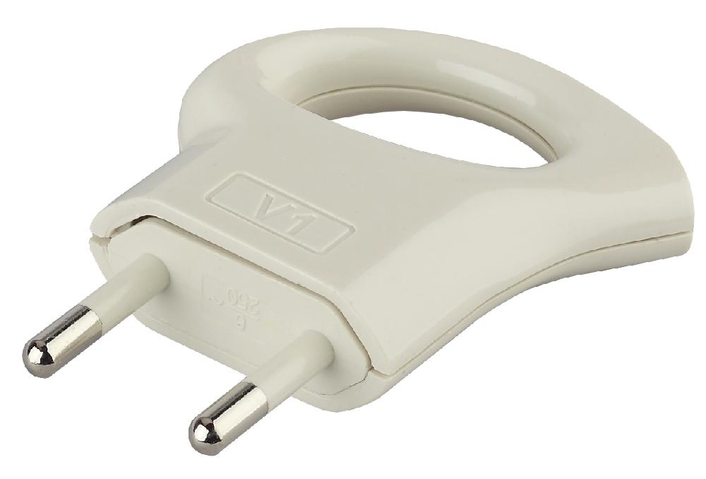Вилка ЭРА V1 без заземления 10A с кольцом непрямой ввод белая