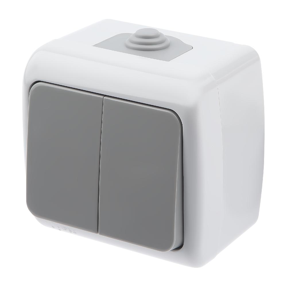 Выключатель Intro Atlantic 5-104-03 двойной, 10А-250В, IP54, открытой установки, серый