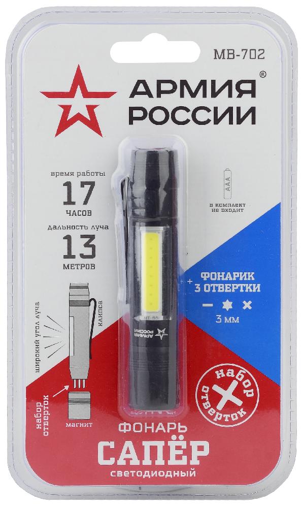 Светодиодный фонарь АРМИЯ РОССИИ MB-702 Сапер ручной на батарейках набор отверток магнит клипса
