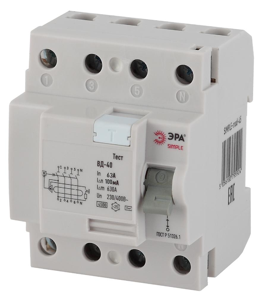 SIMPLE-mod-50 ЭРА SIMPLE Устройство защитного отключения УЗО ВД-40 4P 63А/100мА (электронное) (50/60
