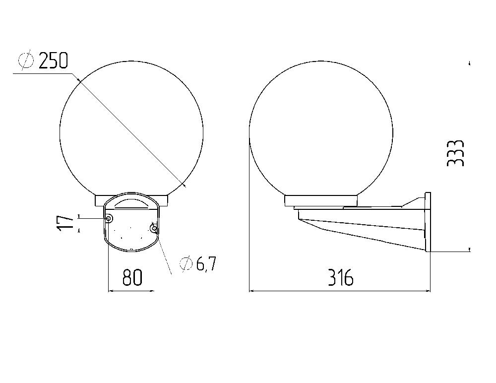 Садово-парковый светильник ЭРА НБУ 01-60-251 шар опаловый настенный IP44 Е27 max60Вт d250mm